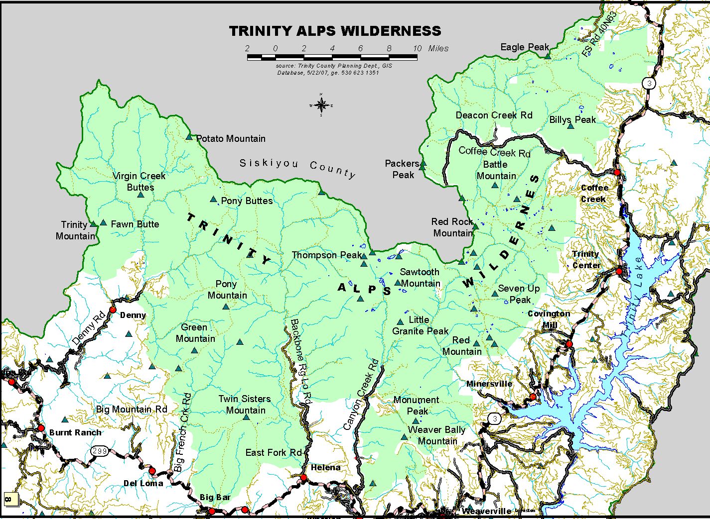 Trinity Alps Wilderness Map (jpg) from Mappery.com (html)