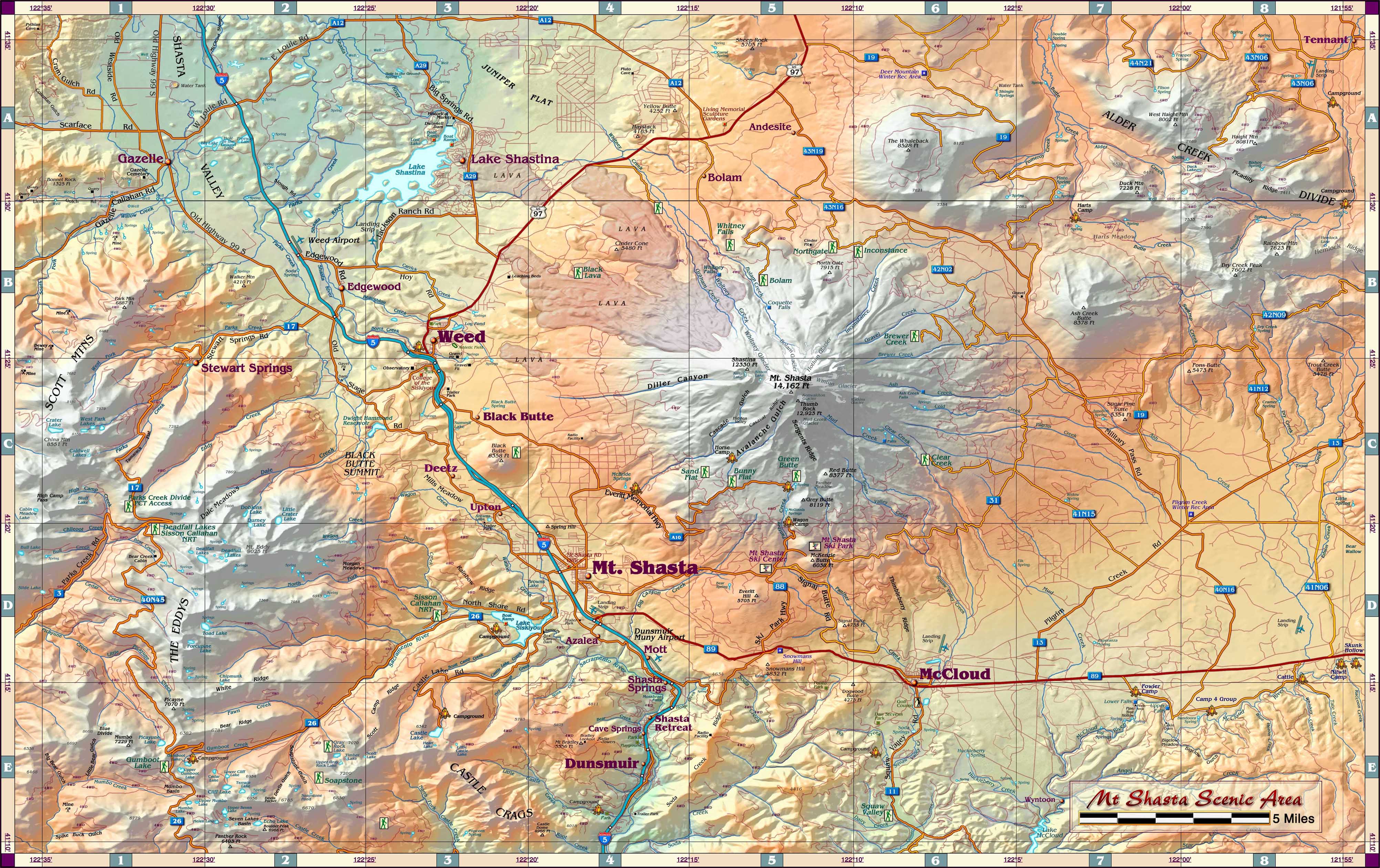 Mt Shasta Scenic Area Map (jpg) from Mappery.com (html)